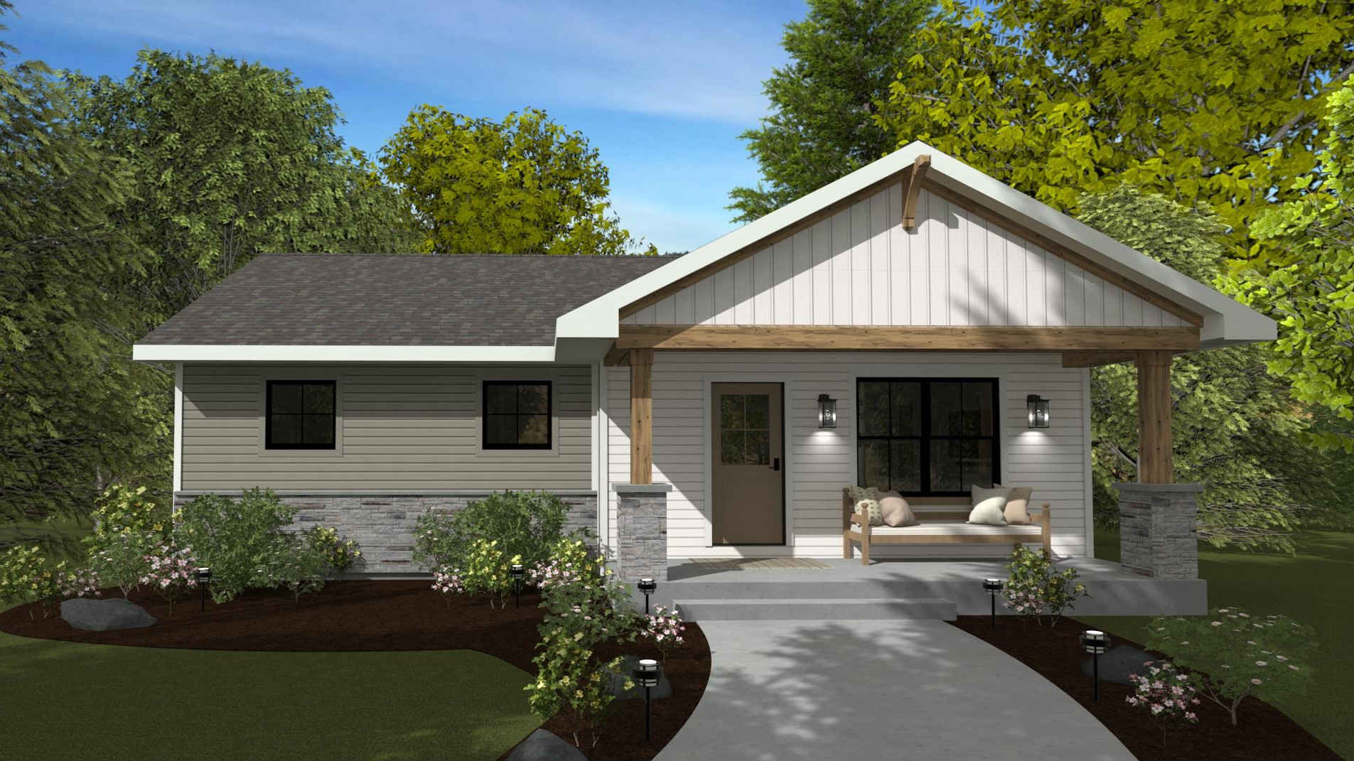 MOONSTONEIn NEW Floor Plan Designs<p data-start="289" data-end="610">The Moonstone Floor Plan combines efficient design with future-ready flexibility to support your homeownership journey. With <strong>1 bedroom</strong>, <strong>1.5 bathrooms,</strong> and<strong> 990 square feet</strong> of thoughtfully planned living space, this home is ideal as a starter home, downsizing option, or right-sized custom build with room to grow.</p> <p data-start="612" data-end="1193">At the heart of the home, an <strong>open-concept great room</strong> flows into a spacious <strong>kitchen with a large island</strong> featuring seating on both sides, creating a welcoming space for cooking, dining, and entertaining. A <strong>large pantry</strong> provides generous storage, while the kitchen sink is positioned beneath a window overlooking the back deck, bringing in natural light and backyard views. A nearby door offers direct access to the <strong>open deck</strong>, making indoor-outdoor living seamless. A convenient <strong>half bath</strong> just off the great room gives guests their own space while keeping the owner’s suite private.</p> <p data-start="1195" data-end="1549">The oversized <strong>owner’s suite</strong> is designed as a comfortable retreat, complete with a <strong>walk-in closet</strong> and a <strong>private ensuite bathroom</strong>. For added efficiency, the <strong>laundry area</strong> is thoughtfully incorporated into the primary bath, maximizing functionality within the home’s compact footprint. A <strong>covered front porch</strong> adds curb appeal and creates a welcoming entrance.</p> <p data-start="1551" data-end="2020">For homeowners who want the option to expand over time, <strong>the Moonstone offers flexible additions</strong>. An optional 300-square-foot main-level expansion extends the right side of the home, adding a second bedroom with a walk-in closet and a full bathroom. An optional finished lower level adds 820 square feet of additional living space, including a family room, an extra bedroom, a full bathroom, and mechanical/storage space — ideal for guests, hobbies, or growing families.</p> <p data-start="2022" data-end="2179">The 990 square feet of main-level living space fits efficiently on a compact footprint, making the Moonstone well-suited for city, suburban, and narrow/small lots.</p> <p data-start="2181" data-end="2382">Whether you're starting your homeownership journey or planning for future flexibility, the Moonstone 1 bed, 1.5 bath floor plan delivers smart design, open-concept living, and the ability to grow as your life evolves.</p>