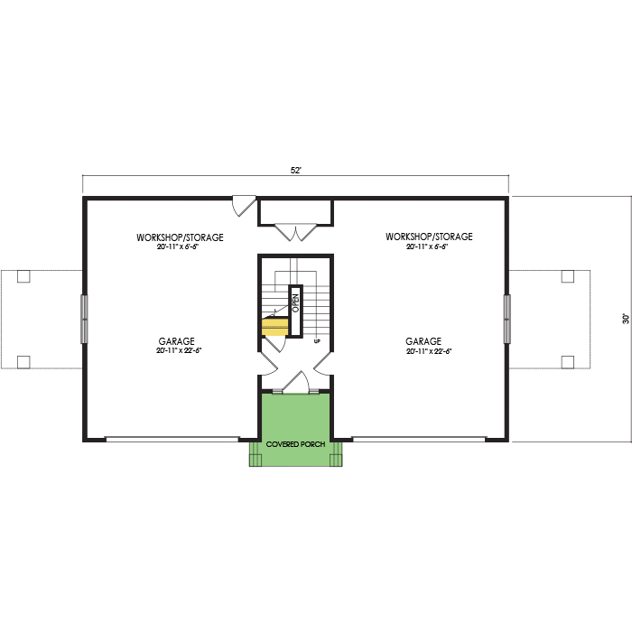 A part of our Vacation Series, the Carriage floor plan features 2 bedrooms and 1 bathroom with a foot print of 52x30 feet and 922 total square feet of living space. Floor Plan #VL200